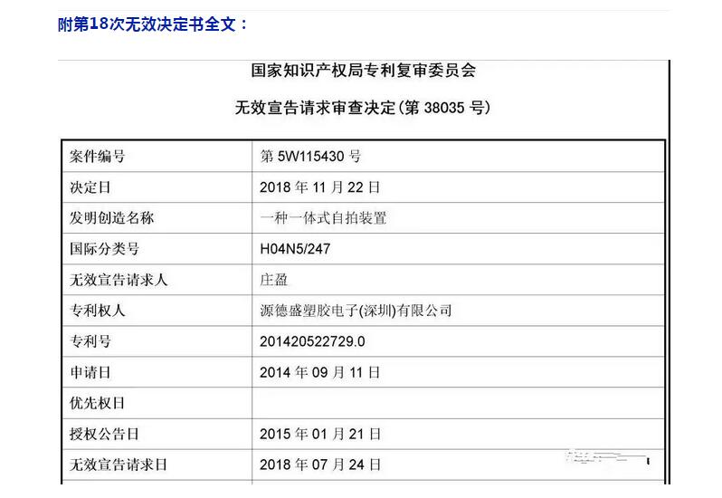 原标题:第18次无效,这个小小“自拍杆”专利仍屹立不倒(附无效决定书)